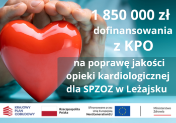 Z przyjemnością informujemy! Nasz szpital otrzymał dofinansowanie w wysokości 1 850 000 zł ze środków Krajowego Planu Odbudowy (KPO) na realizację projektu mającego na celu poprawę...