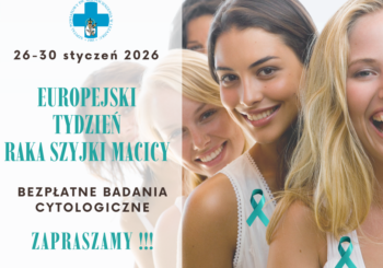 W ramach obchodów Europejskiego Tygodnia Raka Szyjki Macicy serdecznie zapraszamy wszystkie Panie do skorzystania z bezpłatnych badań cytologicznych, które odbędą się w dniach 26–30 stycznia w...