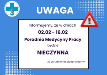 Poradnia Medycyny Pracy nieczynna w dniach 2-16 luty
