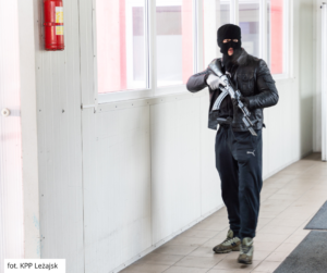 Scenariusz obejmował m.in. zagrożenie z użyciem przemocy bezpośredniej oraz symulację zagrożenia chemicznego, co umożliwiło sprawdzenie procedur bezpieczeństwa, ewakuacji, zabezpieczenia terenu oraz wymiany informacji i łączności w sytuacji kryzysowej.