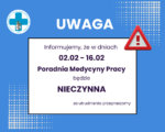 Start Aktualności Nowy numer telefonu do poradni specjalistycznych Aktualności Nowy numer telefonu do poradni specjalistycznych 30/01/2025 Informujemy, że aktualny numer telefonu do:– Poradni Diabetologicznej– Poradni Endokrynologicznej – Poradni Neurologicznejto 17 2404 705Przed wykonaniem połączenia prosimy o przygotowanie:✔ Numeru PESEL✔ Numeru skierowania Post navigation Poprzedni wpis Europejski Tydzień Raka Szyjki Macicy Następny wpis Światowy Dzień Walki z Rakiem