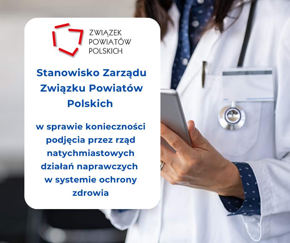 Zarząd Związku Powiatów Polskich 21 stycznia 2025 r. przyjął stanowisko w sprawie konieczności pilnych działań naprawczych w systemie ochrony zdrowia. Dokument odzwierciedla wspólne stanowisko samorządów z całego kraju.