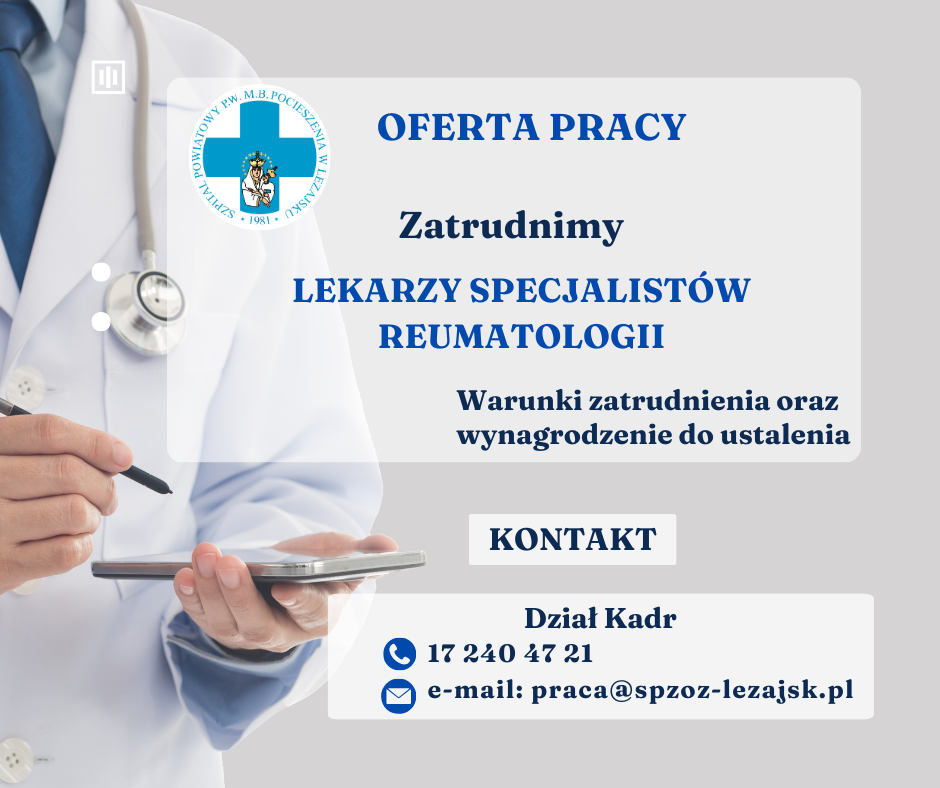Poszukujemy lekarzy reumatologów do pracy w naszym szpitalu.
