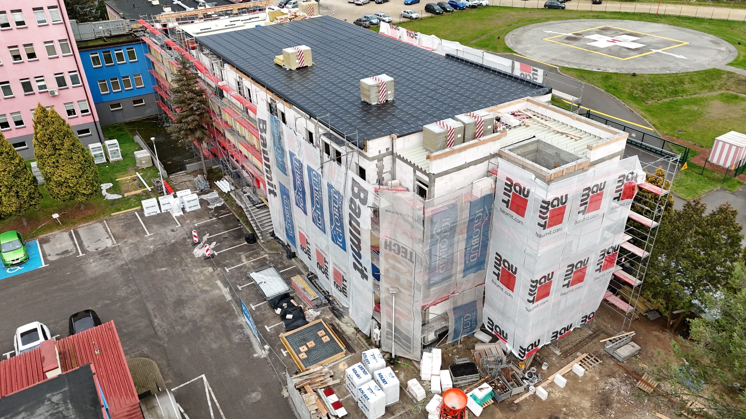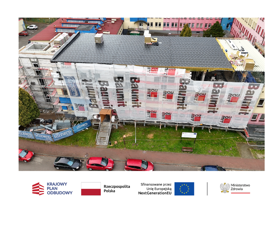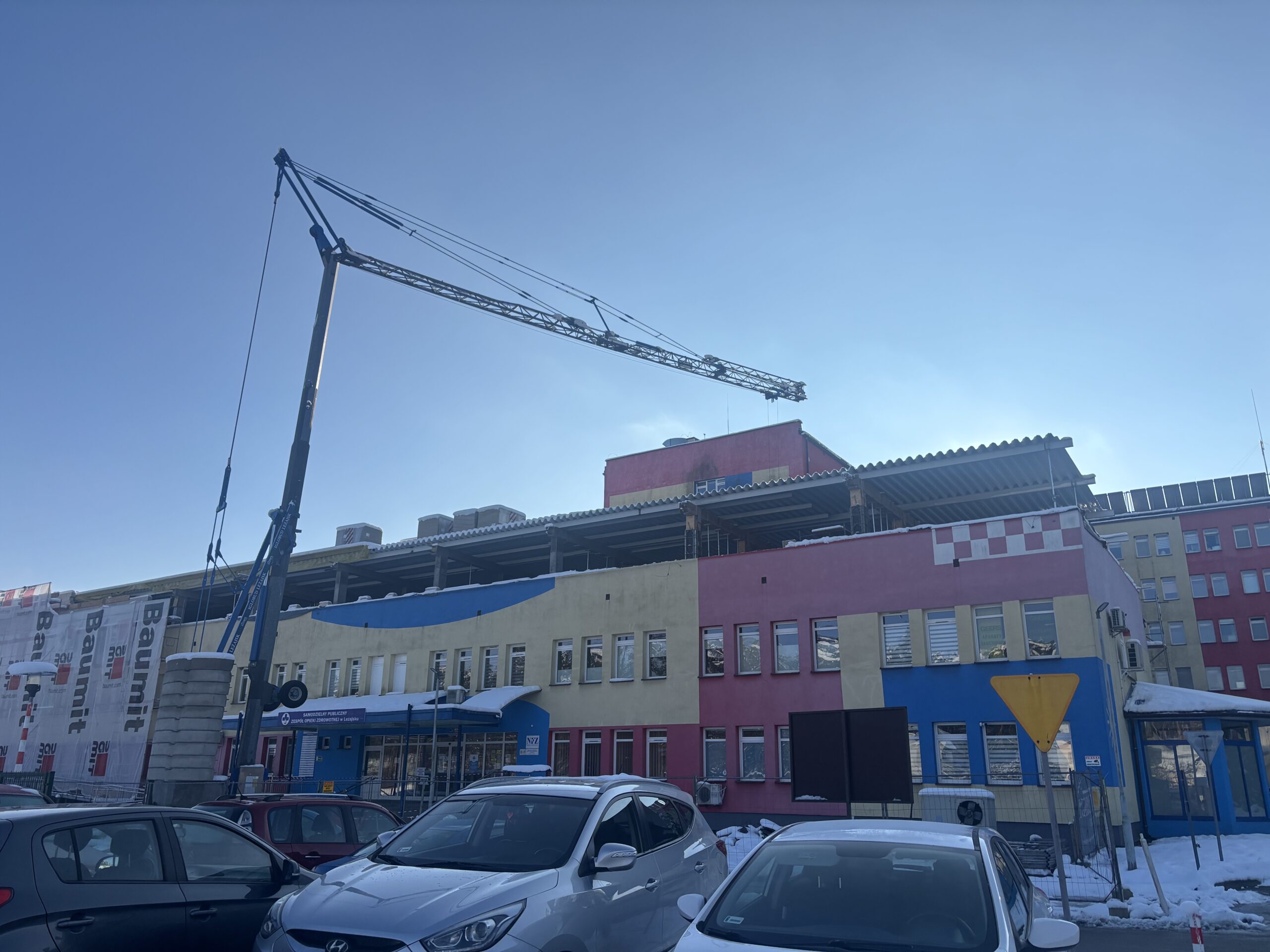 Dobiegają końca prace związane z wykonaniem pokrycia dachu na nadbudowanym piętrze Przychodni Specjalistycznej.