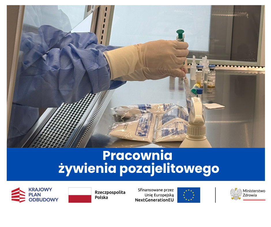 Pracownia żywienia pozajelitowego w naszym szpitalu powstała w ramach realizacji inwestycji pn: „Utworzenie Zakładu Opiekuńczo Leczniczego oraz pracowni żywienia pozajelitowego w Samodzielnym Publicznym Zespole Opieki Zdrowotnej w Leżajsku”, finansowanego przez Ministerstwo Zdrowia ze środków KPO oraz Powiatu Leżajskiego.